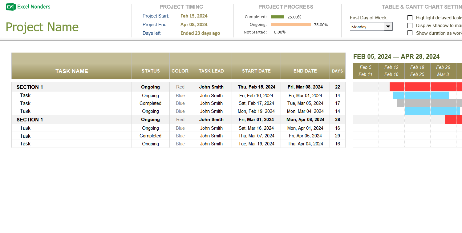 Designed with the diligent project manager in mind, this tool transforms complex projects into a visually captivating and easily navigable Gantt chart. Imagine having the power to oversee every aspect of your project, from milestones to deadlines, with unparalleled clarity, enhancing your project planning capabilities.